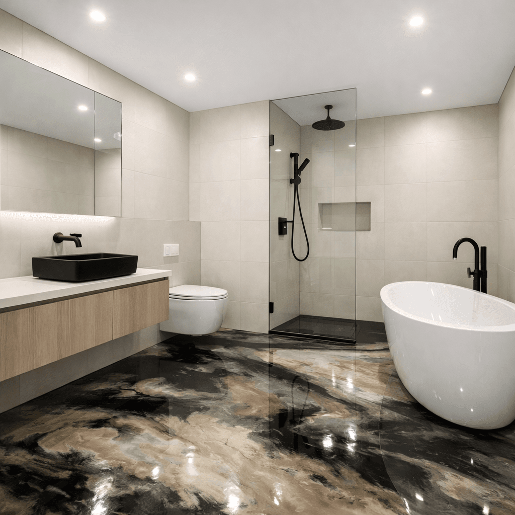 Les sols époxy résistants à l'eau sont parfaits pour la cuisine et la salle de bain. Ils sont faciles à nettoyer et durables, offrant une protection optimale contre l'humidité.